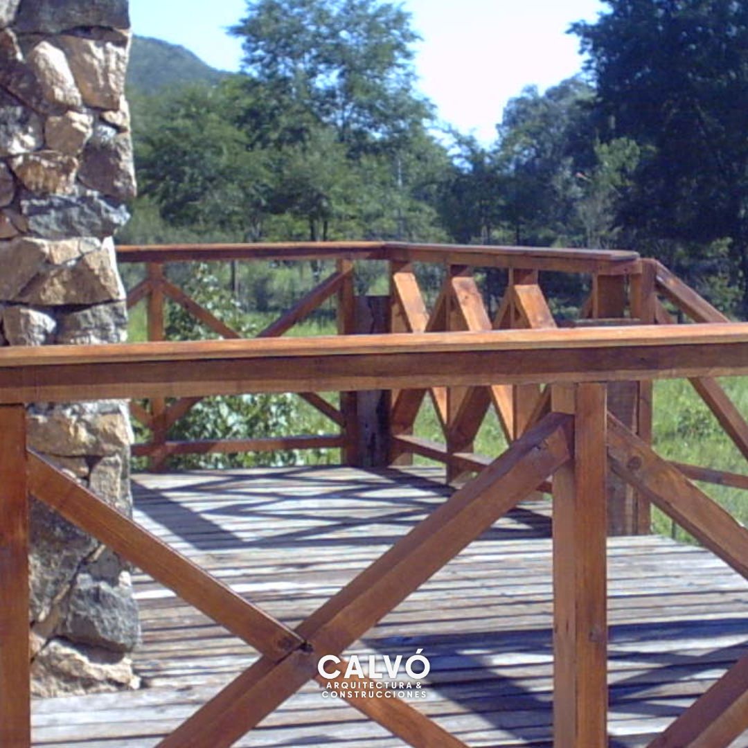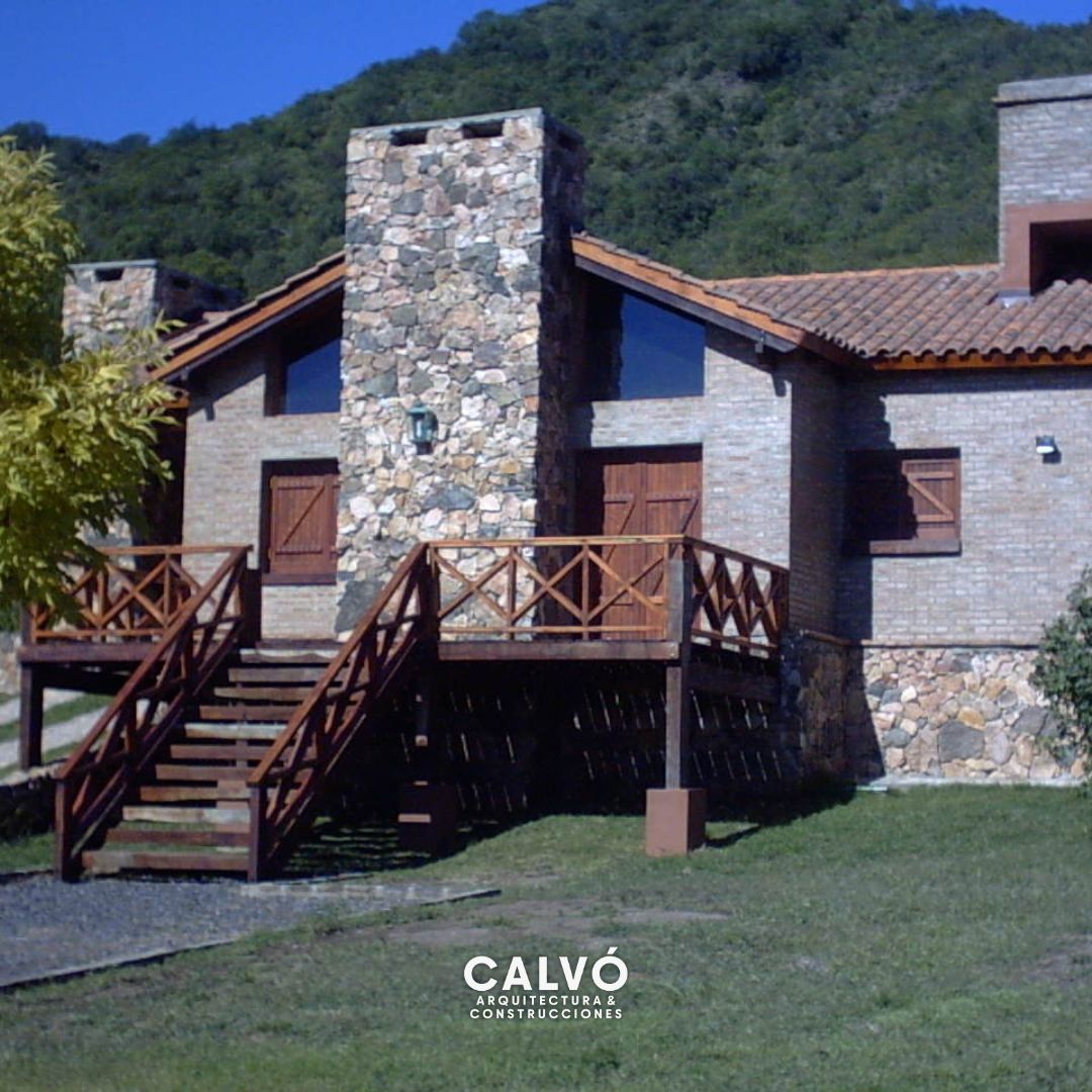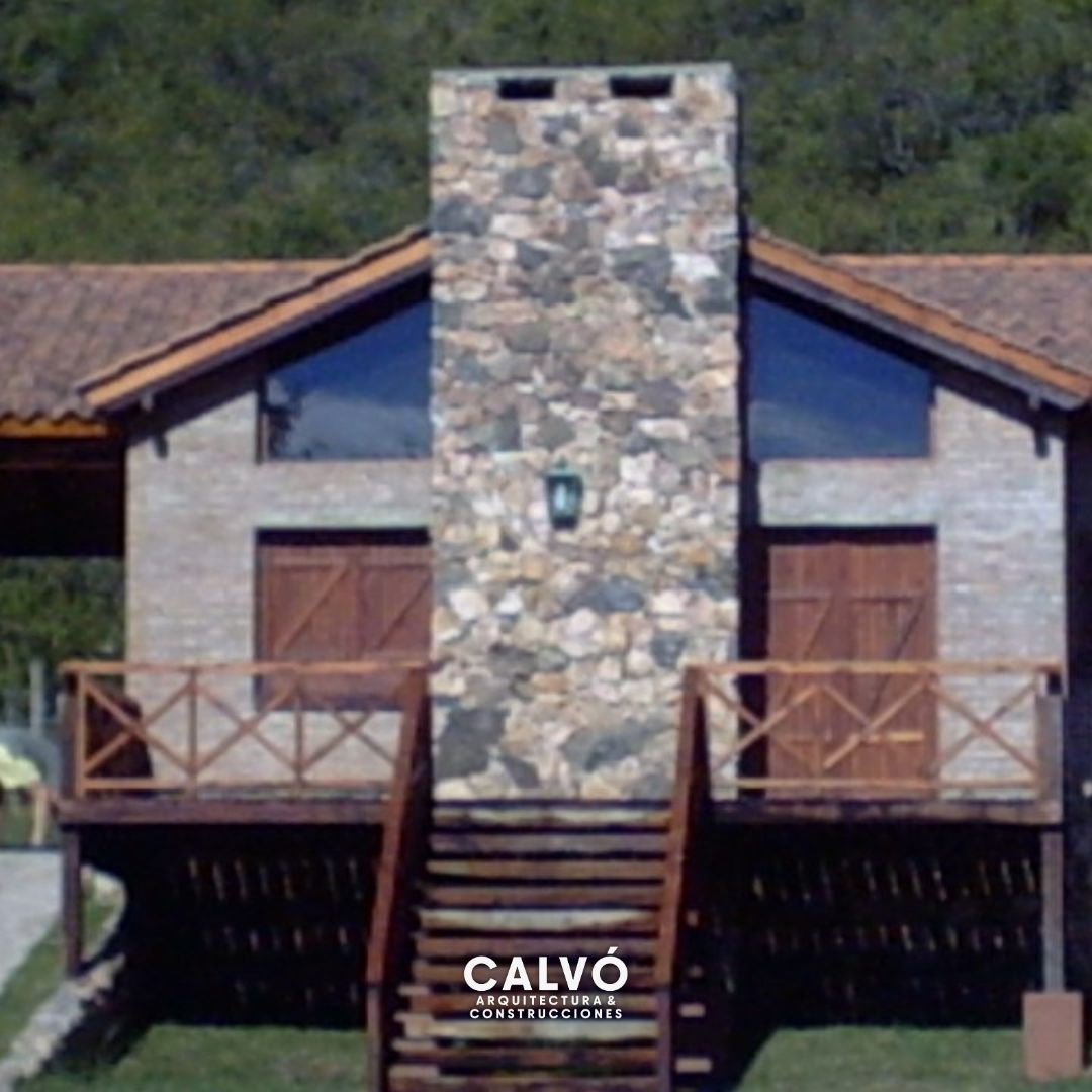 Esta vivienda unifamiliar se sitúa en un terreno con desnivel, lo que permite aprovechar al máximo las vistas del entorno natural circundante. La construcción sigue un estilo tradicional, con ladrillo visto y revestimientos de piedra que le confieren una estética robusta y rústica, en armonía con el paisaje. El acceso principal se realiza a través de un deck elevado de madera, conectado por una amplia escalera que, además de resolver la diferencia de nivel del terreno, crea un espacio exterior ideal para disfrutar del entorno. Los detalles en madera aportan calidez y refuerzan la integración con la naturaleza. La vivienda se encuentra rodeada de un terreno amplio, ofreciendo un ambiente funcional y cómodo para la vida familiar.